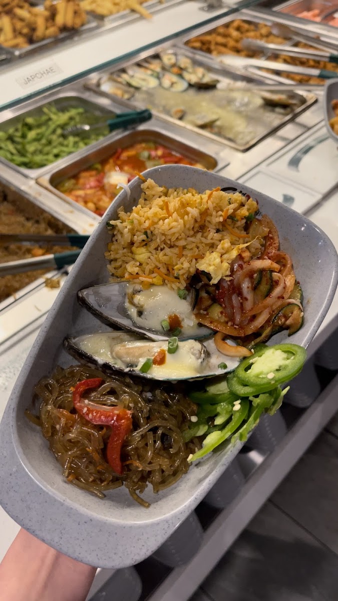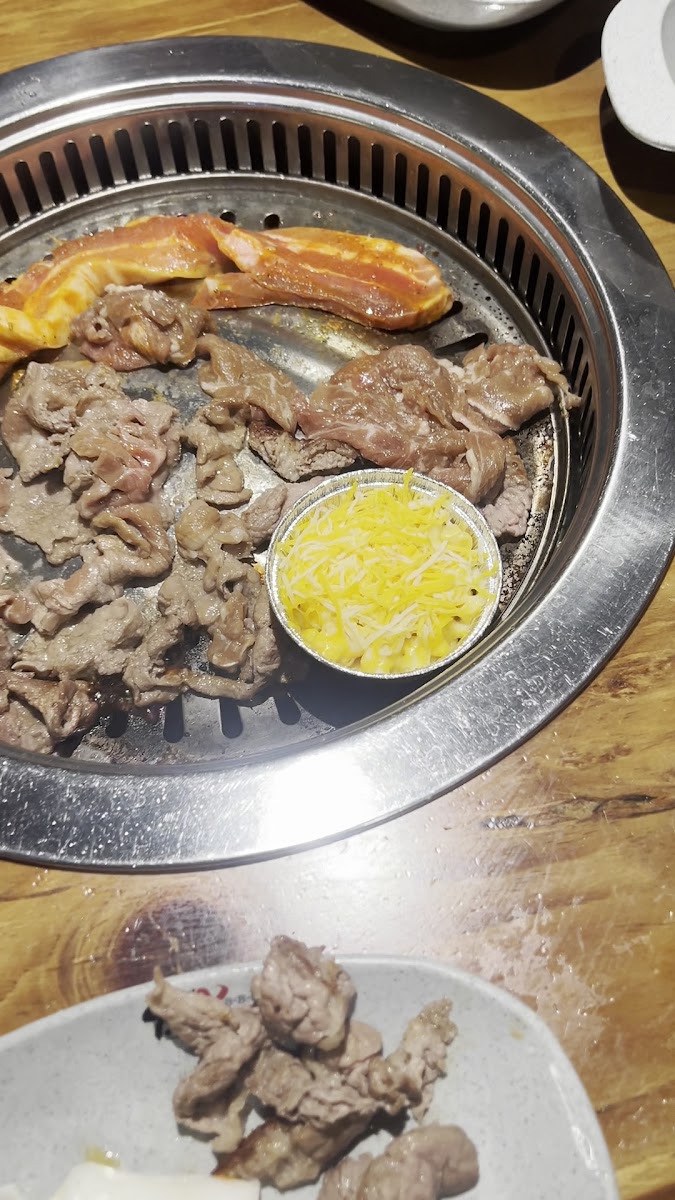 As for the menu, the offerings are sure to tantalize your taste buds. Dive into a selection of delectable meats such as tender marinated bulgogi and rich brisket, cooked to perfection right at your table. Pair your grill creations with items from the extensive salad bar, featuring everything from fresh vegetables to numerous flavorful sauces and even a unique selection of Mexican-inspired additions. Don't forget to sample the refreshing drinks, like imported beers and flavored soju, available for those looking to enhance their barbecue experience.